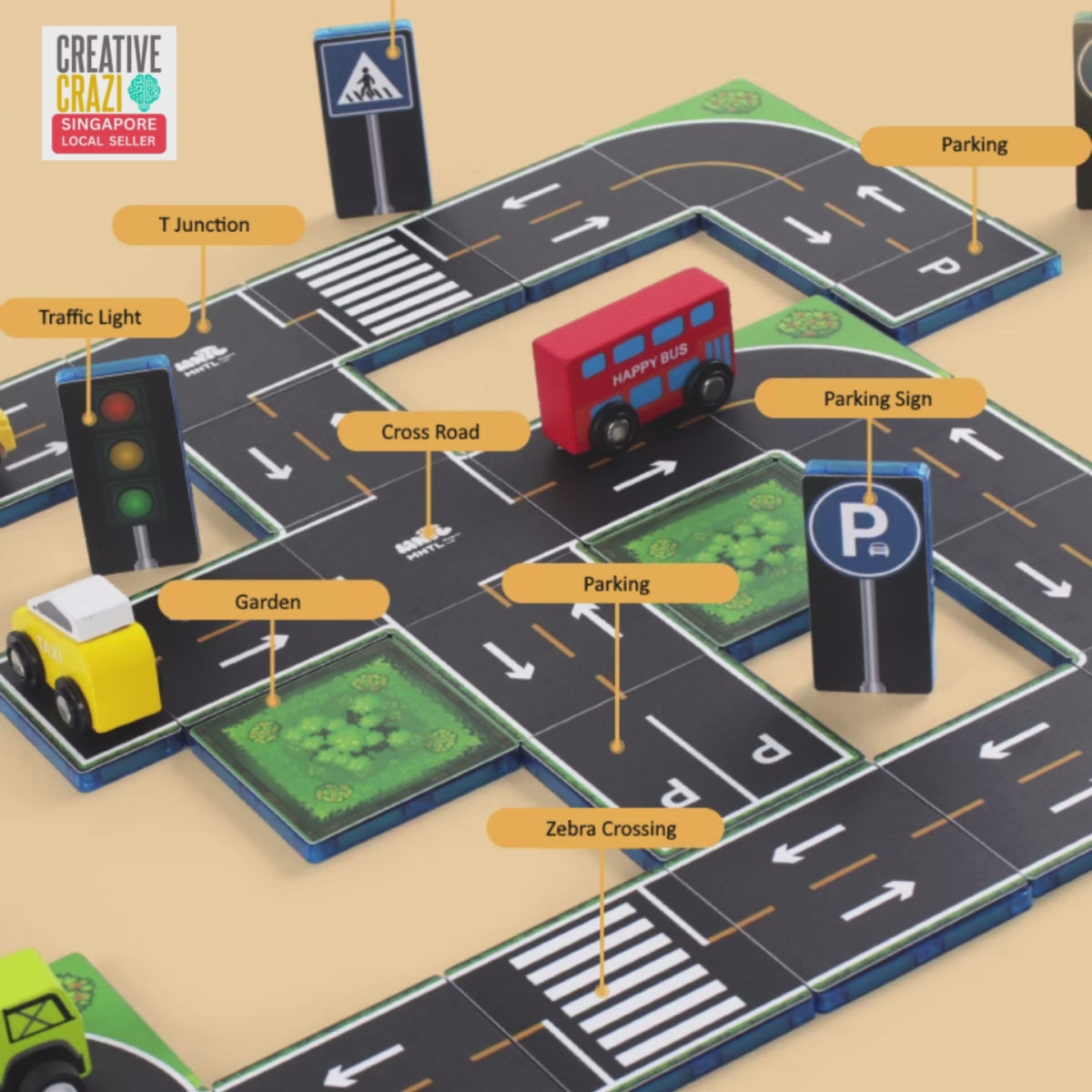 🚗 Compatible with CreativeCrazi Magnetic Blocks – Expand your child’s building experience by adding roads, railways, railroads, and signs.